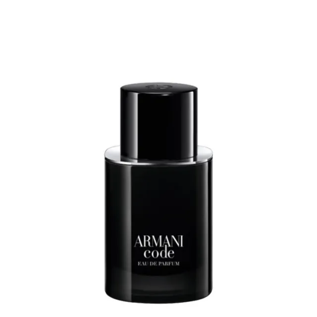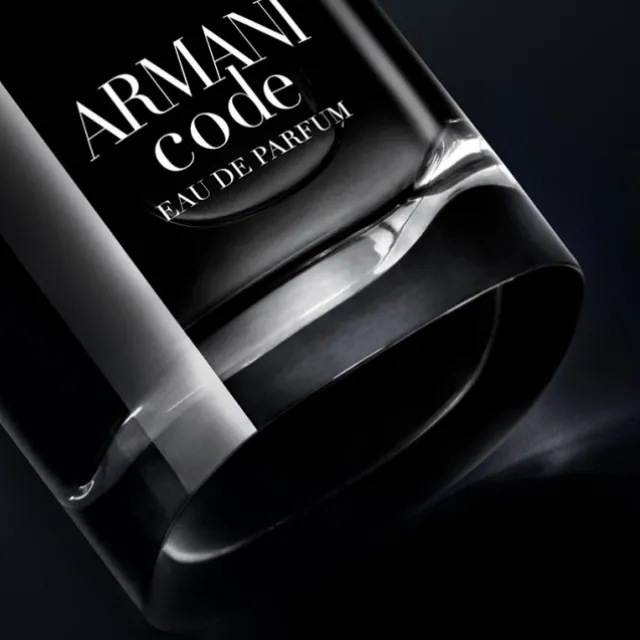Le flacon de l’eau de parfum Armani Code exprime une vision moderne du luxe. D’un noir intense, à la forme carrée et arrondie, il possède une base en verre épurée. Sous le capot portant le monogramme Giorgio Armani, une plaque argentée accroche la lumière pour un contraste sophistiqué.