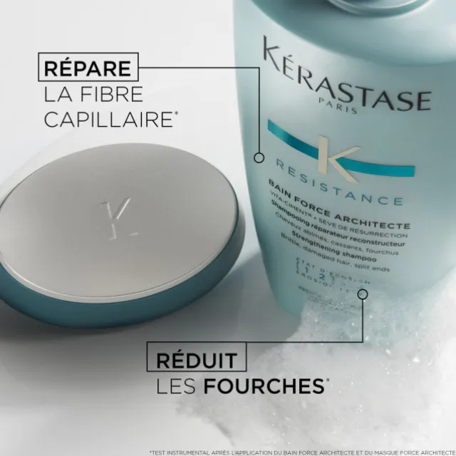Le Bain Force Architecte est un shampooing réparateur reconstructeur, conçu pour les cheveux fragilisés et abîmés.