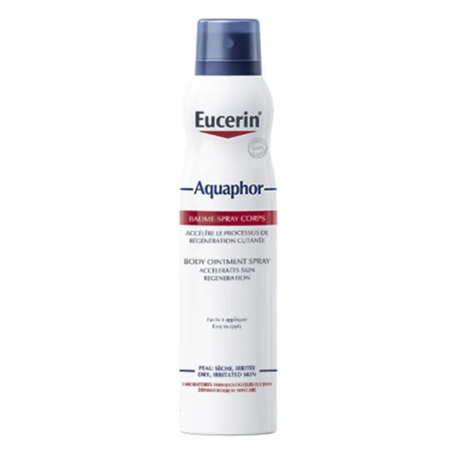 Le Baume-Spray Corps Eucerin Aquaphor favorise la régénération cutanée, apaise et hydrate les peaux très sèches, irritées.