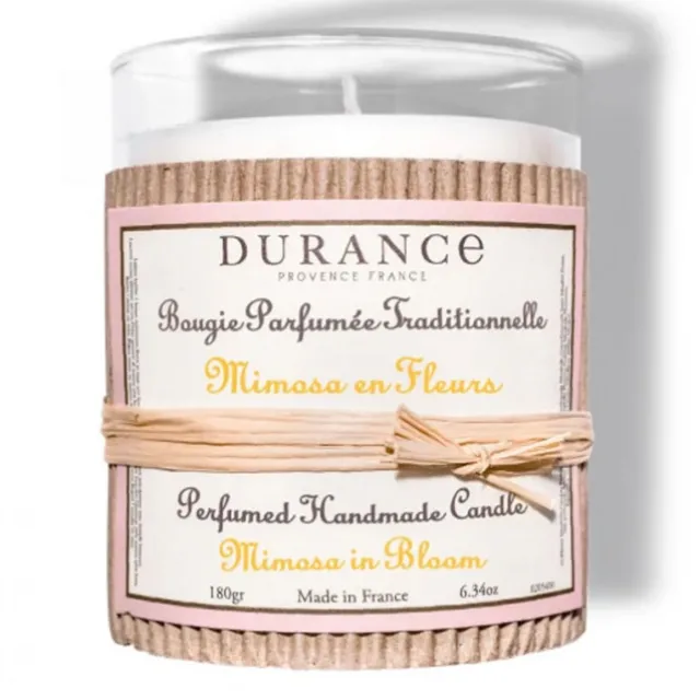 De la composition de la cire naturelle à la pose de la mèche, nos bougies sont réalisées de manière traditionnelle. Le ruban de raphia signe toute l’authenticité et l’élégance intemporelle de chaque bougie parfumée mimosa Durance. Un soin particulier et un savoir-faire dans le choix des matières premières qui garantit une parfaite qualité de diffusion et de brûle de la bougie.