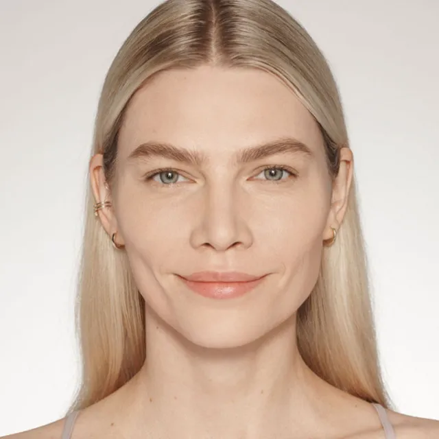 Sourcils clairsemés : Reproduisez l’aspect naturel des sourcils en hachurant avec le crayon. Comblez les zones clairsemées avec la formule poudre.