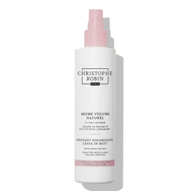 Cette brume légère enveloppe les cheveux d’un voile volumisant qui apporte corps aux racines et densité aux longueurs.