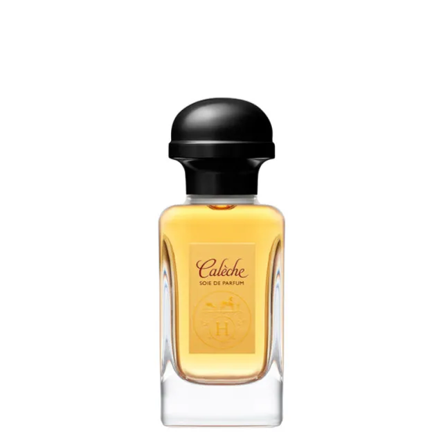 Composé par Guy Robert en 1961, Calèche est le premier féminin de la maison. C’est un floral boisé chypré, d’une grande féminité, dont le nom fait écho à l’attelage emblématique d’Hermès. Calèche est un roman qui brille par la beauté de ses matières premières, de la gaieté des agrumes à la modernité des notes aldéhydées, du coeur floral brodé d’ylang-ylang, de rose et de jasmin, au sillage boisé, chypré, souligné par la noblesse de l’iris.