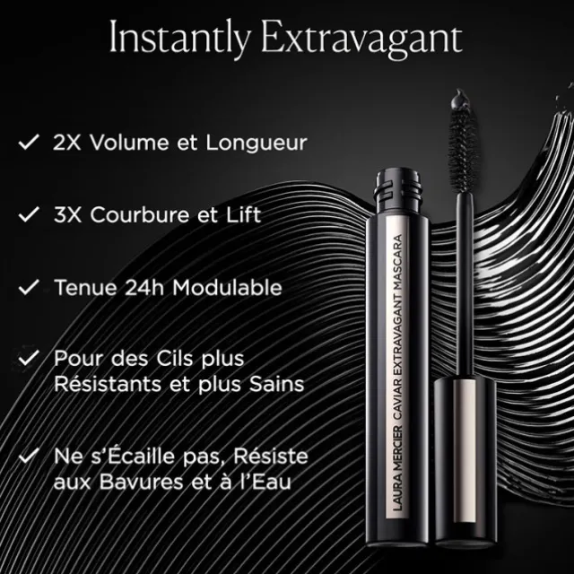 Le mascara Caviar Extravagant offre instantanément deux fois plus de volume et de longueur, trois fois plus de courbure et de lift, et une tenue modulable 24 heures, tout en renforçant les cils toute la journée jusqu’au soir.