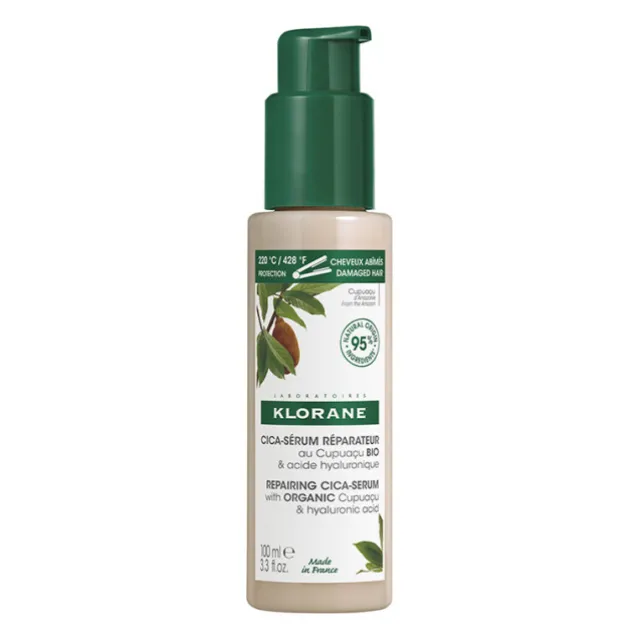 Le Cica-Sérum réparateur au Beurre de Cupuaçu BIO et acide hyaluronique répare et protège durablement les cheveux dès la première application*.