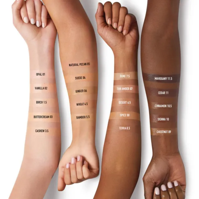 Associez avec le Smoothing Face Brush : Déposez une quantité de la taille d’un perle sur le pinceau et estompez. Pour plus de couvrance, continuez à appliquer par couches avec le pinceau.
