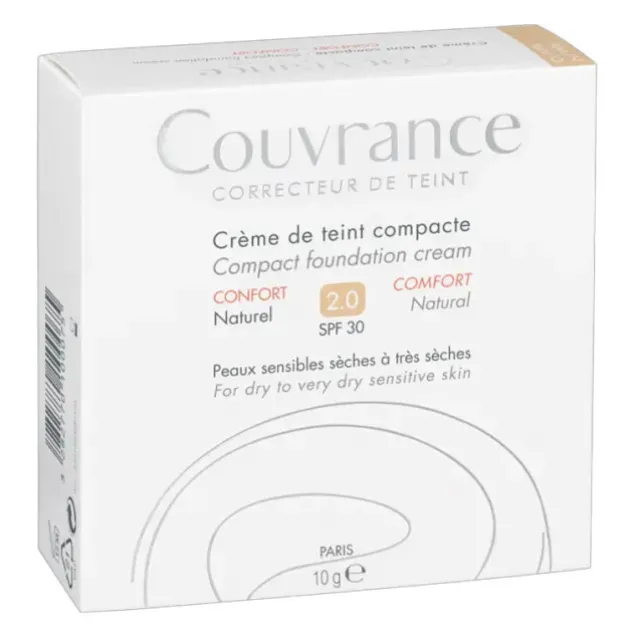 Couvrance Crème de teint compacte Confort unifie les peaux sensibles, claires, et couvre efficacement les imperfections cutanées sévères.