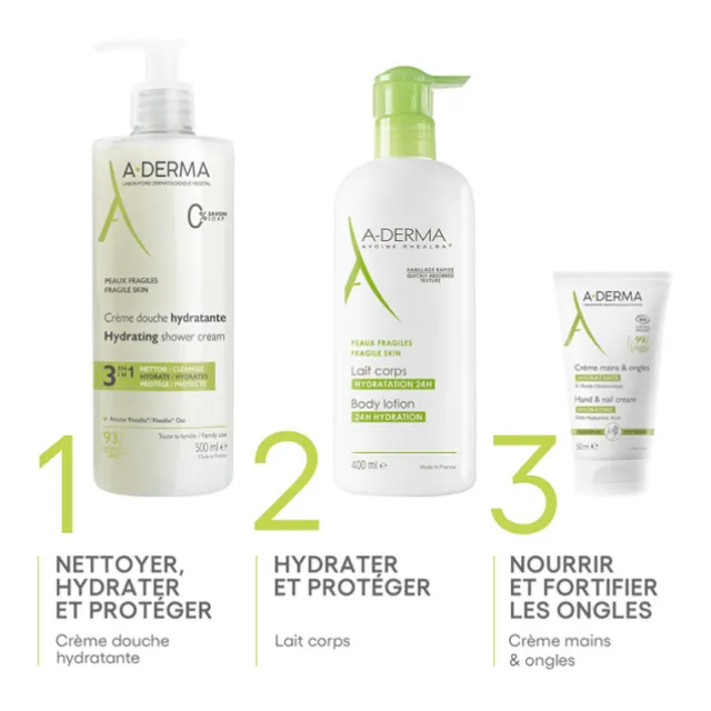 La crème douche hydratante d’A-DERMA est l’hygiène quotidienne qui nettoie en douceur, hydrate et protège la peau fragile de toute la famille.