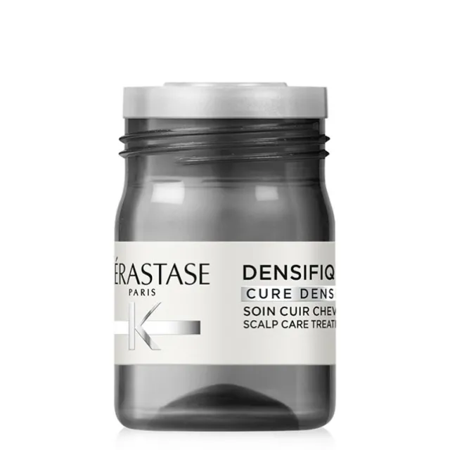 Soin du cuir chevelu sans rinçage, la Cure Densifique de Kérastase est conçue pour redonner de la densité aux cheveux ayant tendance à s’affiner.