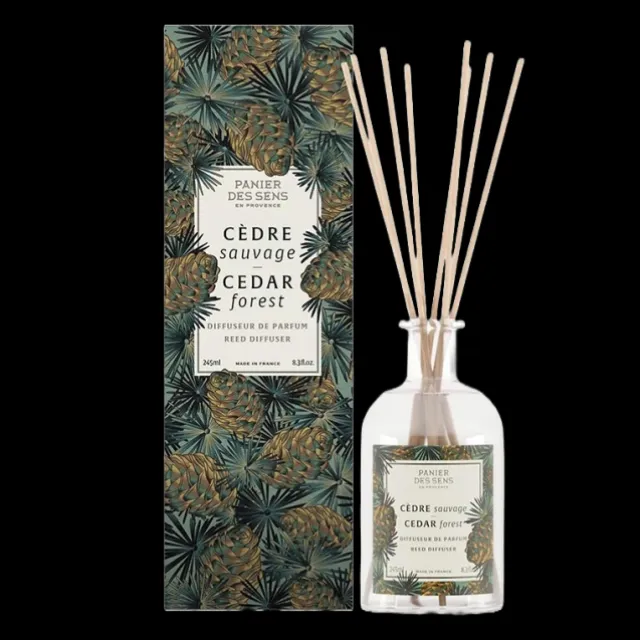 Pour diffuser le parfum du Cèdre dans une pièce, il faut ouvrir le flacon verre et y insérer les tiges de rotin. La contenance du flacon est étudiée pour diffuser le parfum du Cèdre Sauvage pendant plusieurs mois. Pour recharger le diffuseur de parfum, il faut se munir de la recharge universelle : à l’aide d’un entonnoir, remplir délicatement le flacon avec l’alcool puis remettre de nouveaux rotins. L’intensité du parfum peut être adaptée selon vos envies, en n’utilisant qu’une partie des tiges pour une diffusion plus subtile ou en retournant les tiges pour une diffusion plus intense.
