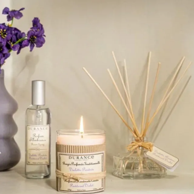 Parmi ces senteurs évocatrices, retrouvez le parfum violette poudrée qui transformera votre intérieur en un cocon de douceur.