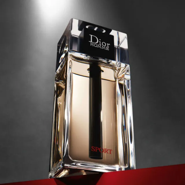 Le flacon monolithe Dior Homme se renouvelle avec une élégante légèreté. Épuré et ciselé, son verre limpide s’habille de la coiffe désormais signature de la ligne : un bloc cristallin au sein duquel se niche un cube noir siglé DIOR HOMME. Plus bas, les lettres SPORT se détachent, inscrites en volume dans un beau rouge vinyle vibrant.