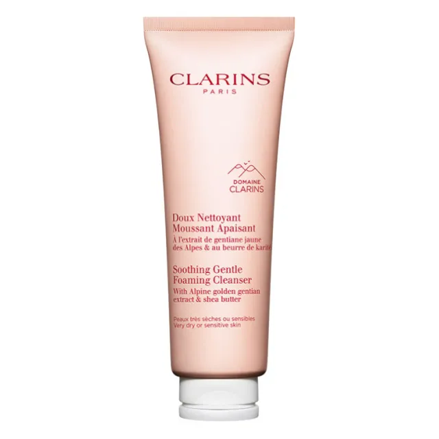 Ce nettoyant moussant enrichi aux extraits d’herbes des Alpes du Domaine Clarins démaquille, apaise les peaux très sèches et sensibles et élimine les impuretés tout en préservant l’équilibre cutané. Une nouvelle texture crémeuse réconfortante qui se transforme en une mousse douce et fine. La peau est douce, fraîche et nette, prête à recevoir les soins.