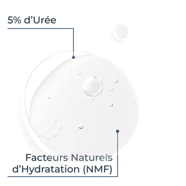 Sa formule sans savon à 5% d’Urée, contenant des Hydratants Naturels, nettoie et exfolie en douceur la peau sèche et rugueuse, tout en préservant la barrière naturelle de la peau et en la protégeant du dessèchement.