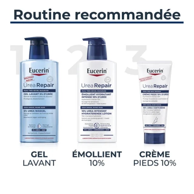 Verser dans les mains ou appliquer directement sur le corps en massant délicatement. Rincer soigneusement puis sécher la peau en la tamponnant avec une serviette, en évitant de frotter. Meilleurs résultats en combinaison avec les produits de soin Eucerin® UreaRepair.