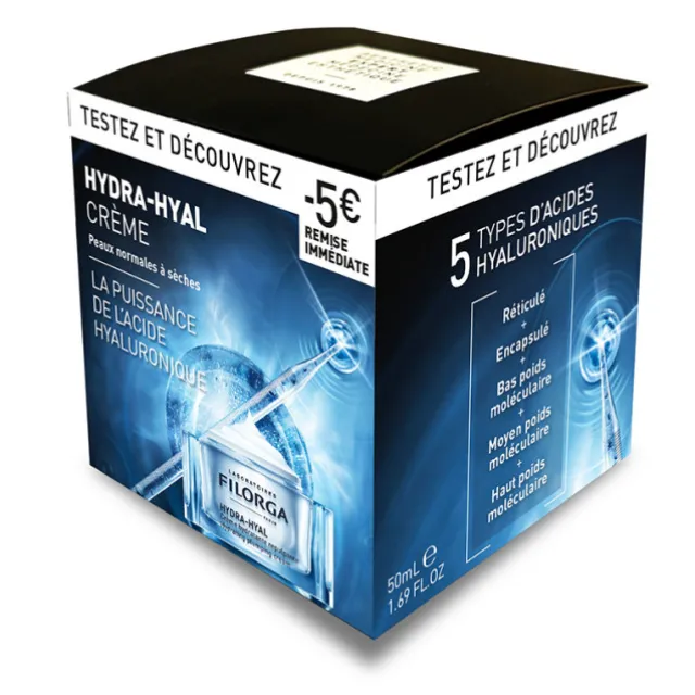 Avec la gamme HYDRA-HYAL, FILORGA s’inspire de la médecine esthétique et s’appuie sur près de 40 ans* d’expertise en injectables. Pour la 1ère fois, la marque intègre dans un de ses soins un complexe qui délivre au cœur de la peau 5 types d’acides hyaluroniques d’origine naturelle [bas poids moléculaire + moyen poids moléculaire + haut poids moléculaire + encapsulé + réticulé] afin de l’hydrater, la lisser et la repulper tout en prévenant le vieillissement cutané.