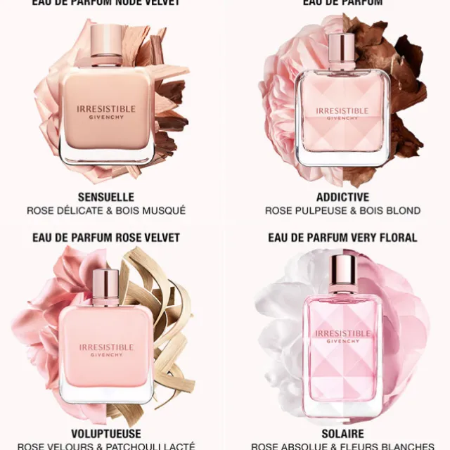 Sensuelle et magnétique, Irresistible Eau de Parfum Nude Velvet est la fragrance de la Maison Givenchy qui célèbre les multiples nuances de la femme Irrésistible.