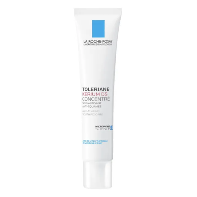 Toleriane Kerium DS Concentré est issu de la science du microbiome. Concentré en trio d’actifs [Aquae Posae Filiformis + Piroctone Olamine + Zinc] qui limite la prolifération du micro-organisme Malassezia, parmi les facteurs à l’origine de la dermatite séborrhéique, et qui renforce les défenses naturelles de la peau en protégeant sa fonction barrière.