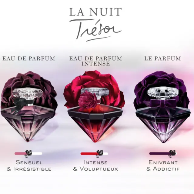 Tout l’intensité et la sensualité de La Nuit Trésor s’incarne dans ce nouveau parfum.