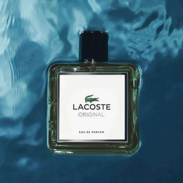 Le flacon Original repose sur un design délibérément minimaliste incorporant les couleurs emblématiques de Lacoste (le vert et le blanc) au sein d’un format premium masculin et singulier.