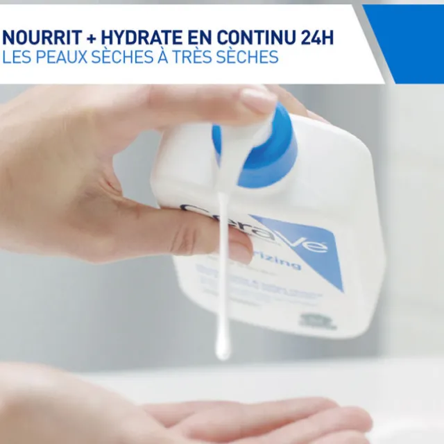 Développé avec des dermatologues, le Lait Hydratant CeraVe nourrit et hydrate la peau en continu pendant 24H. Ce soin enrichi aux 3 céramides essentiels naturellement présents dans la peau et à l’acide hyaluronique restaure la barrière cutanée.