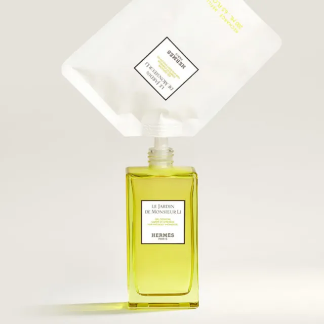 Le flacon est en verre recyclable. La recharge du gel douche corps et cheveux Le Jardin de Monsieur Li permet de recharger le flacon de 200ml.