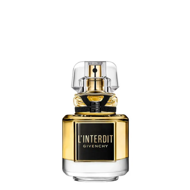 L’Interdit Parfum dévoile une signature plus intense, florale boisée et baumée. Infusé de la douceur de l’Essence d’Amande amère, le bouquet blanc iconique de l’Interdit, composé de Fleur d’Oranger, de Tubéreuse et de Jasmin se fond au contact des notes florales et veloutées de l’Absolu de Mimosa.L’accord signature de Vétiver et Patchouli révèle un sillage baumé délicieusement ambré et captivant.