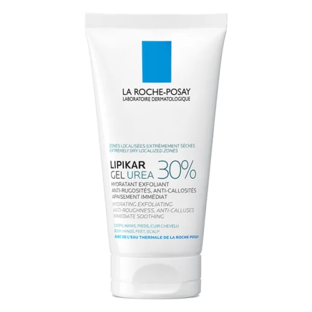 La Roche Posay Lipikar Gel hydratant exfoliant Urea 30% anti-rugosité, anti-callosités, apaissement immédiat zones localisées extrêmement sèches.