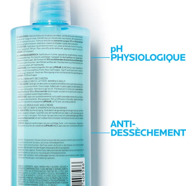 Comment utiliser la crème lavante douche anti-dessèchement Lipikar Surgras de La Roche Posay ?