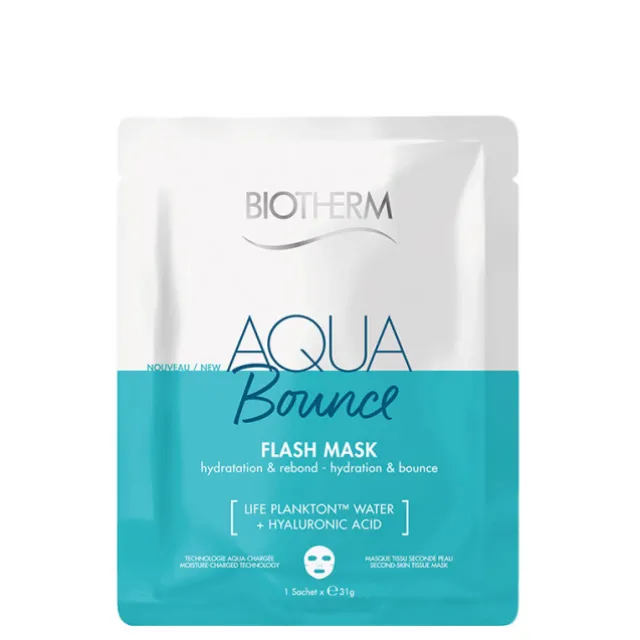 Aqua Bounce Flash Mask procure une hydratation intense de la peau. Grâce à une combinaison d’Acide Hyaluronique et d’eau de Plancton de VieTM, la peau parait repulpée. Ce masque tissu effet « seconde peau » régénère votre peau et la rend plus souple, plus éclatante.