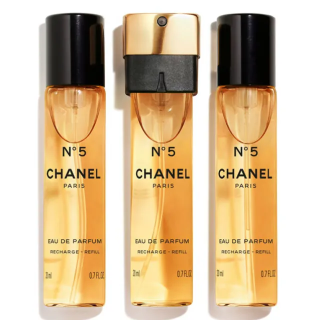 N°5, l’essence même de la féminité. Un bouquet floral poudré. Un parfum mythique et intemporel qui s’emporte partout grâce à son vaporisateur de sac rechargeable.