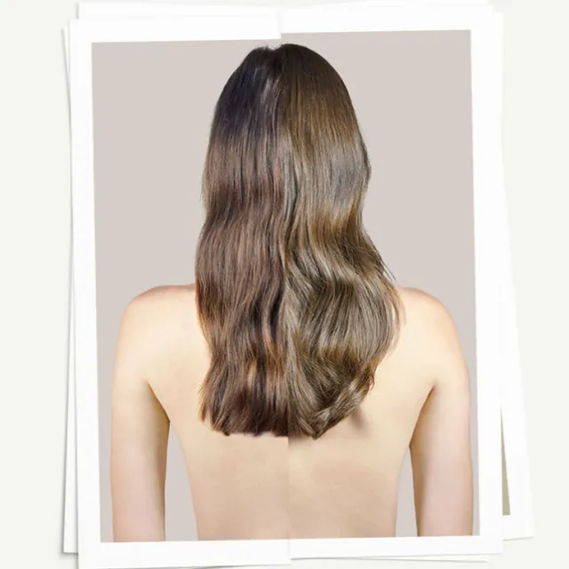 La surface des cheveux est lissée pour un effet d’illumination instantané et un fini brillant avec aucun temps de pose