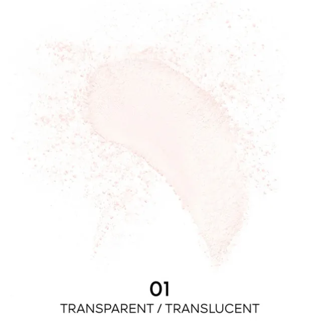 Pour un teint glow, appliquer la poudre libre uniquement sur les zones sujettes aux brillances de la zone T (front, arête et ailes du nez et menton) à l’aide de la houppette intégrée.