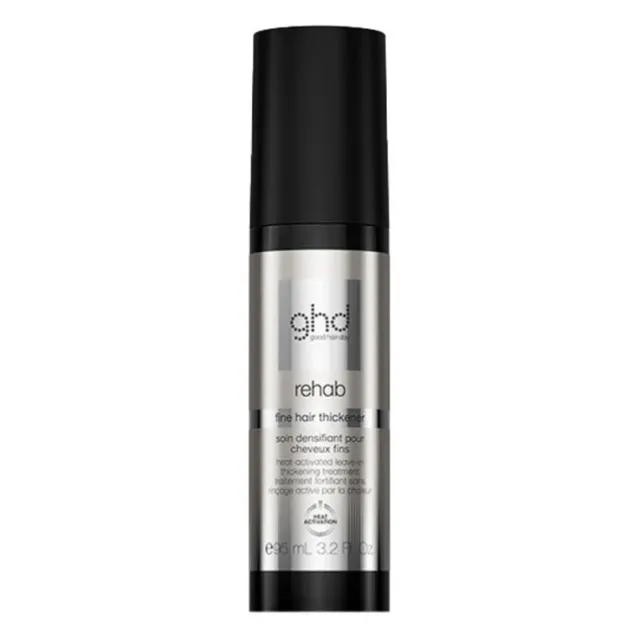 Redonnez du corps à vos cheveux fins grâce au sérum en spray sans rinçage ghd rehab, un soin activé par la chaleur d’un outil de coiffage qui agit instantanément. Sa formule experte, enrichie en super nutriments, en biopolymère et dotée du système thermoprotecteur ghd, épaissit chaque mèche1, renforce la fibre capillaire et protège vos cheveux de la chaleur et de la casse.