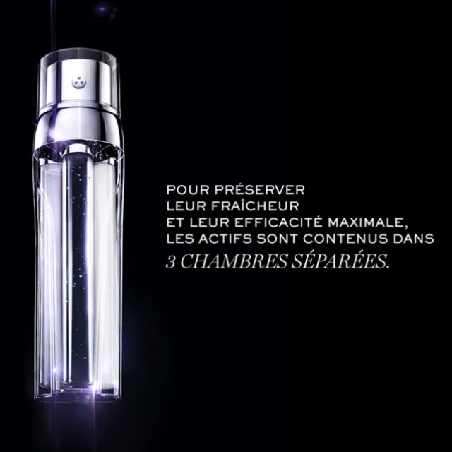 Cela est rendu possible grâce à un packaging ultra innovant : il est composé de 3 chambres individuelles qui permettent de séparer les actifs et les protéger de l’air, de la lumière et des impuretés pour préserver leur fraîcheur et leur efficacité maximale.