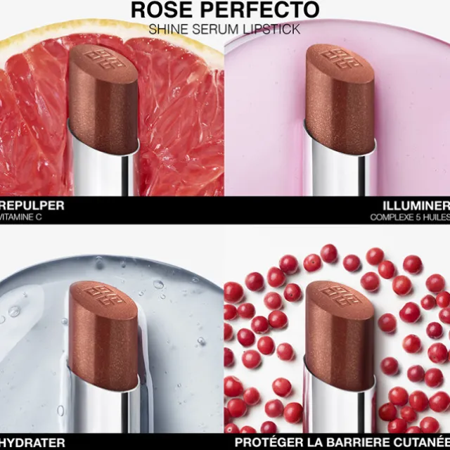 Découvrez Rose Perfecto Shine Serum Lipstick, le rouge à lèvres hybride soin et couleur pour des lèvres ultra-brillantes. Les couleurs intenses infusées d’un puissant Plump Complex alliant acide hyaluronique et vitamine C, offrent 8 heures de soin repulpant** et 24h d’hydratation**. La texture « oil-in-stick »* fondante enveloppe les lèvres de confort, les sublimant en une seule application.