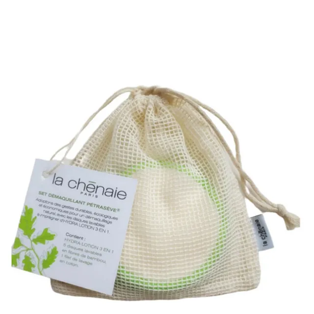 Ce set propose un nouveau geste de démaquillage, plus éco-responsable, alternative aux disques jetables en coton.