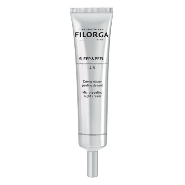 SLEEP & PEEL 4.5 est une crème micro-peeling de nuit qui vise à stimuler le renouvellement cellulaire pendant le sommeil, pour un effet peau neuve au réveil.