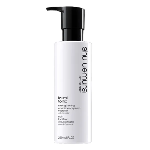 Izumi Tonic de Shu Uemura art of hair reprend les codes de la tradition ancestrale japonaise « yu-su-ru » de mise en beauté des cheveux en les baignant dans de l’eau de riz.