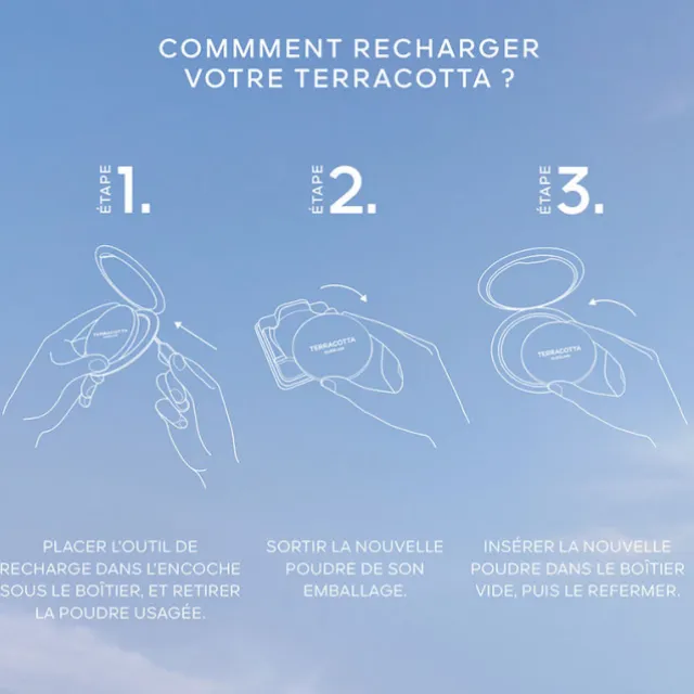 Recharger votre Terracotta d’un geste simple grâce au format recharge de la poudre.