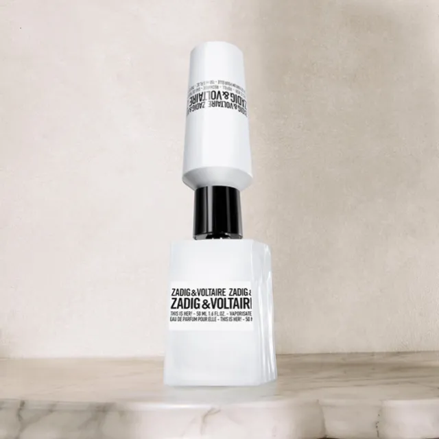 This is Her! La nouvelle Eau de Parfum féminine de ZADIG & VOLTAIRE. Une vanille-châtaigne sensuelle mixée au sillage rock du bois de santal. Le parfum d’une femme libre à l’esprit rebelle !