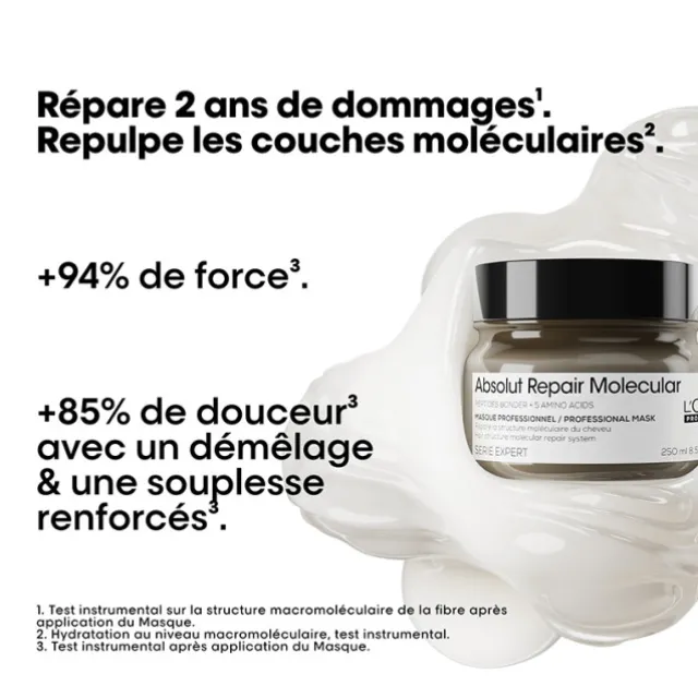 ***Test Instrumental après 7 applications du Shampoing + Sérum à rincer + Masque Absolut Repair Molecular.