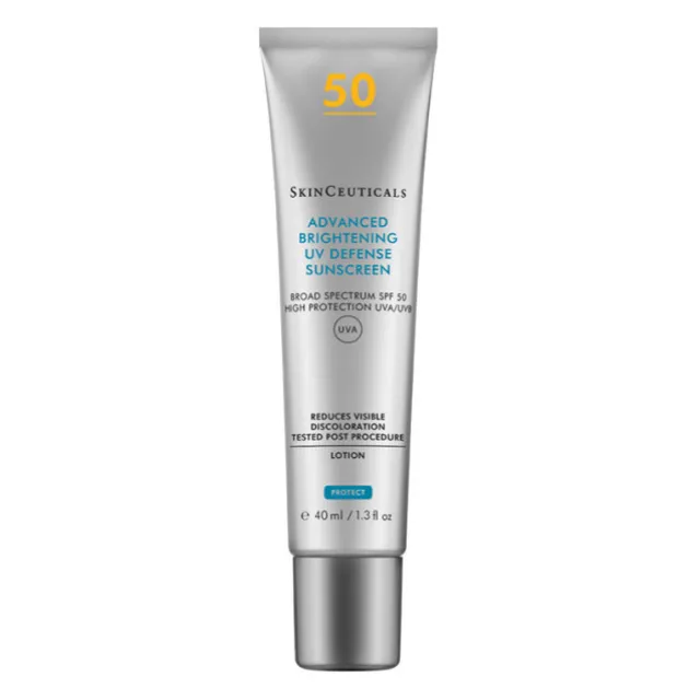 Advanced Brightening UV Defense SPF 50 délivre une haute protection quotidienne à large spectre contre les UVA/UVB. Son complexe d’actifs (1% d’Acide Tranexamique – 2% de Niacinamide) agit directement à la base de l’hyperpigmentation, bloque les médiateurs inflammatoires et prévient des récidives potentielles de taches pigmentatires.