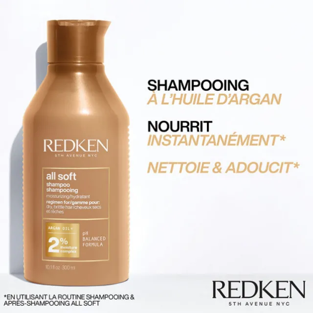 Le shampoing All Soft de Redken nettoie en douceur et hydrate instantanément les cheveux.