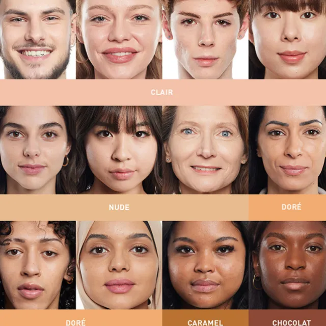 Pigments 100% minéraux. Testé sous contrôle dermatologique. Non comédogène. Formule vegan.