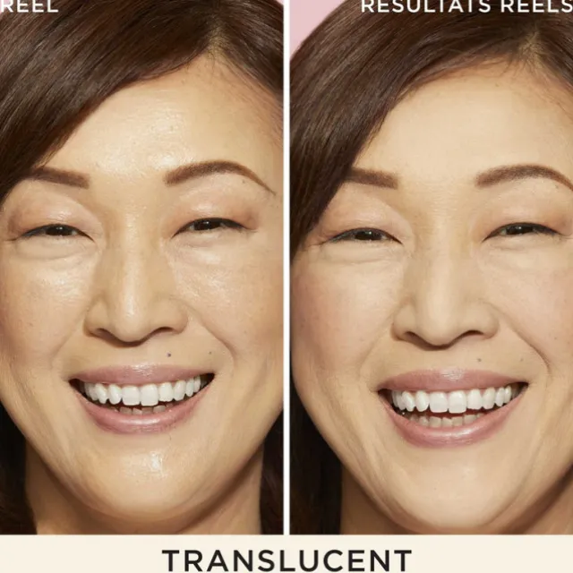 Cette poudre sans talc à appliquer au pinceau poudre Heavenly Luxe™ Wand Ball Powder Brush #8 dépose sur la peau un voile transparent sans marquer les ridules.