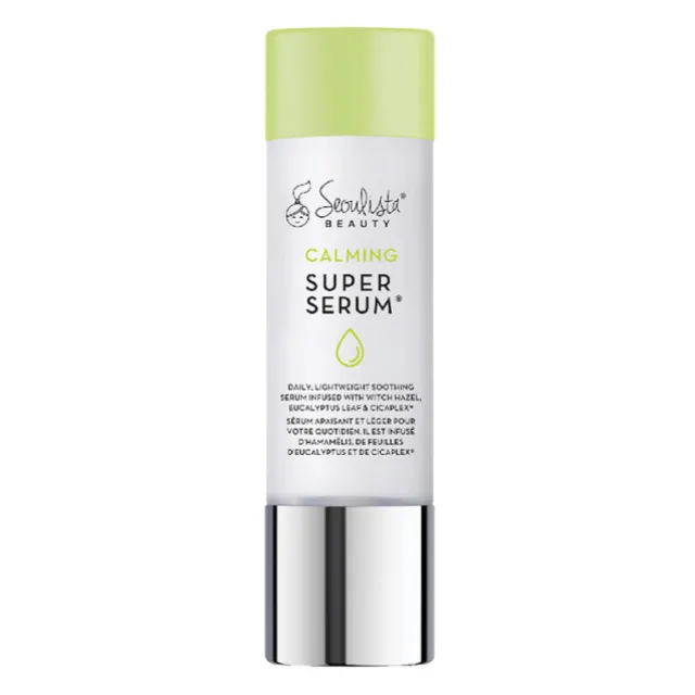 Le nouveau Seoulista Calming Super Serum® est un sérum puissant et léger infusé d’hamamélis, de feuilles d’eucalyptus et de Cicaplex® pour apaiser, hydrater et aider à calmer l’inflammation pour un teint uni.