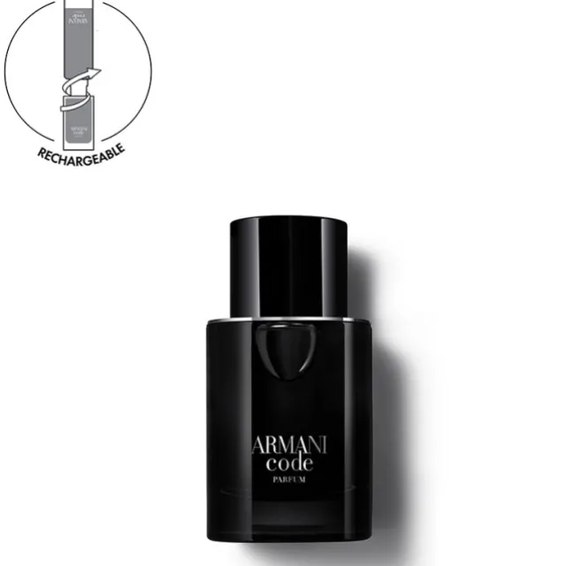 En phase avec les engagements continus de Giorgio Armani en matière de développement durable, le flacon ARMANI CODE PARFUM, éco-conçu, est rechargeable sur tous les formats grâce à la recharge 150ml.