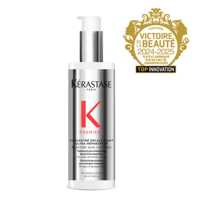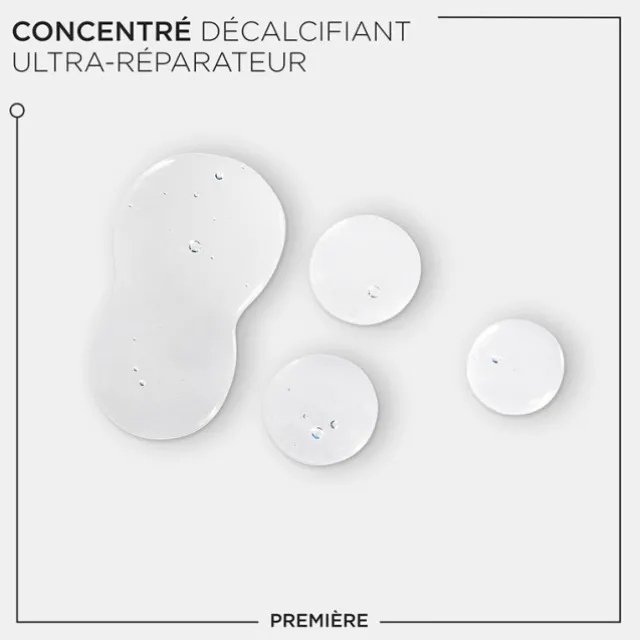 Le Concentré Décalcifiant Ultra-Réparateur de la gamme Première répare en profondeur tous les types de cheveux abîmés.
