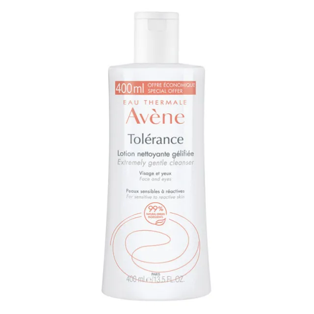 Formulée sans parfum, Tolérance Lotion nettoyante gélifiée nettoie et démaquille en douceur le visage, les yeux et les lèvres.